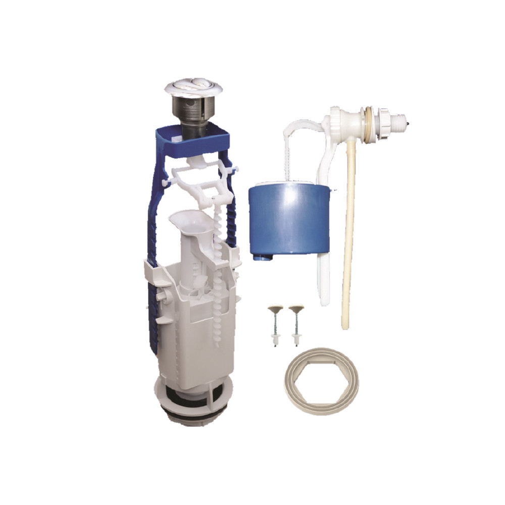Комплект арматури з двокнопковим зливним механізмом і бічним клапаном впуску 1⁄2" і пласт. різзю TAU (9830221)